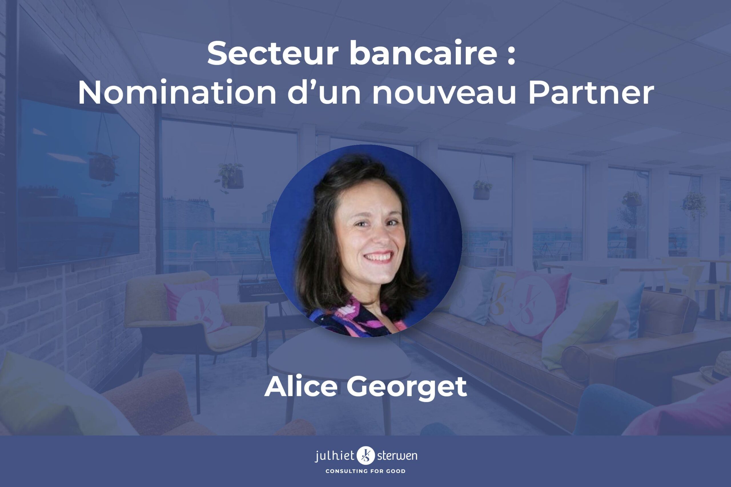 Julhiet Sterwen, cabinet de conseil en stratégie, transformation et innovation, annonce la nomination d’Alice Georget en tant que Partner. La nomination de cette experte du secteur bancaire s’inscrit pleinement dans la forte dynamique de développement du cabinet dans ce secteur, sur lequel le Cabinet a établi un positionnement de leader.